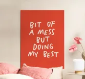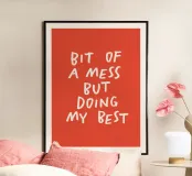 Bring a touch of honesty and warmth to your space with this hand-drawn art print reading “Bit of a Mess But Doing My Best” in white lettering on a gentle red background. The playful, expressive design radiates encouragement and self-acceptance, making it a perfect gift for friends, students, or anyone needing a daily boost. Ideal for home, office, or creative studios, this contemporary piece blends modern style with heartfelt sentiment. Brighten up birthdays, Christmas, or just-because moments with this unique statement artwork.