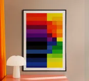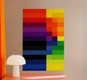 A fascinating study in colour and form: This composition explores the interplay of pure colour fields in a geometric arrangement. From bright yellow to fiery reds and oranges to deep purples, blues and greens, a complex visual spectrum of the Blue Hour unfolds. The work is reminiscent of Josef Albers' "Homage to the Square" and contemporary pixel art, while at the same time continuing the tradition of concrete art. The asymmetrical composition creates tension and rhythm - a meditative work about colour relationships between day and night.