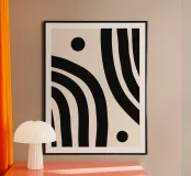 This modern boho design combines organic lines and geometric shapes in black on a cream-coloured background. Perfect for lovers of minimalist and abstract style, this motif conveys elegance and tranquillity. Ideal for wall murals, mugs, cushions or mobile phone covers, it adds a touch of timeless art to any room. Whether as a statement piece in the living room or as a daily companion - this design inspires. Perfect for anyone who appreciates modern home decor.