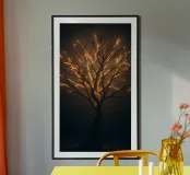A striking silhouette of a tree with branches aglow, creating an enchanting, abstract design suitable wallpaper. The nighttime backdrop enhances the luminous effect.