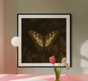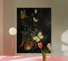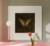 Butterfly resting on dark foliage with intricate patterns hahnemühle