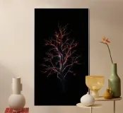 An abstract representation of a tree with illuminated branches stands against a dark backdrop, creating a striking, modern aesthetic ideal for mobile backgrounds.