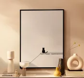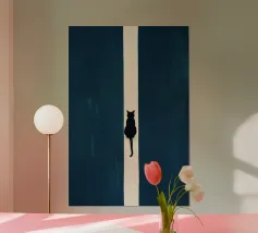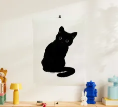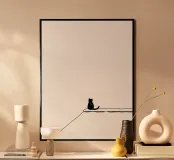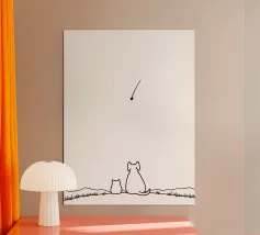 Minimalist line art of a cat sitting on the edge Perfect for cat lovers and modern wall decor