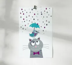 Cute Cat Illustration Using Umbrella! Adorable images of cats sheltering from the rain with small umbrellas. Perfect for cat lovers and rain lovers!