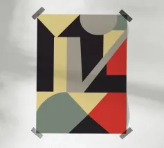 Colorful abstract pattern with geometric shapes and flowing hahnemühle