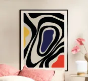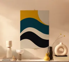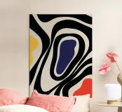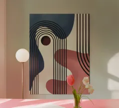 This eye-catching design combines curved lines in black with bright colour accents in blue, red and yellow. The combination of contrasts and vibrant shapes makes this motif a real eye-catcher. Perfect for lovers of modern art and boho styles, it adds a unique dynamism and creativity to wall murals, cushions, mugs or mobile phone covers. Whether for the home or as an inspirational gift, this design brings artistic expression to any environment.