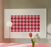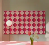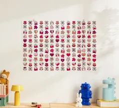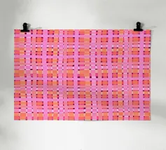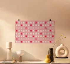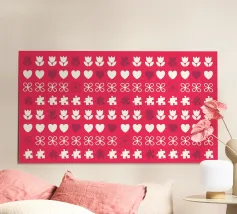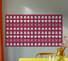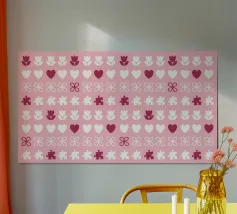 Cheerful Design. Playful concept with colored background. Symmetrical and repeating pattern. Backlit Filmprint, Cover stationery, Decorative Pillows, mugs, and blankets. Vibrant Colors Pink, Purple, and Beige. Celebrating an event, such as Valentine's Day. Also suitable for a circus Performance, theatre, and school.