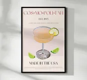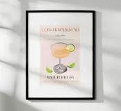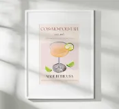 Set on a neutral, cream background, this elegant illustration of the famous cocktail cosmopolitan adds sophistication to any kitchen, cafe or dining area. This minimalist yet informative design will spark conversation in any setting, adding a refined touch to your environment.