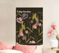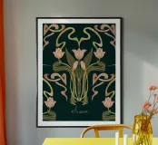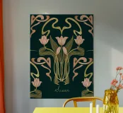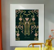 Add a touch of timeless elegance with Deco Tulip Bloom, a customizable Art Deco floral print in rich deep-forest tones. Inspired by vintage Nouveau motifs, this artwork combines refined tulip shapes with geometric symmetry for a luxurious statement piece. Personalize it with your name or a loved one’s to create a unique gift or a bespoke accent for your home. Perfect for Art Deco, floral, or modern classic interiors.