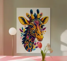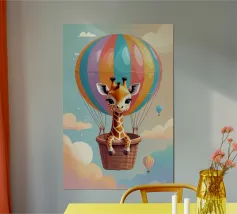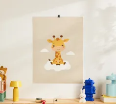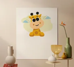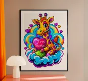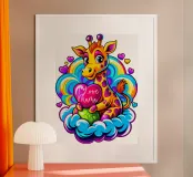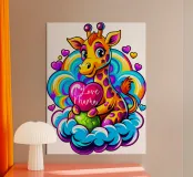 Bring home a touch of cuteness and warmth with this adorable design! Featuring a charming giraffe lovingly hugging a heart-shaped pillow on a fluffy cloud, all surrounded by vibrant rainbow hues. This playful and love-filled design is perfect for adding a cheerful vibe to any room, making it a delightful companion for cozy moments or as an eye-catching decorative piece. Perfect for: Adding a splash of fun to a child's room or as a unique gift for someone special.