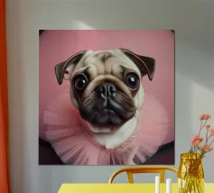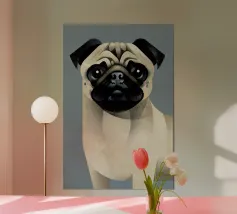 Cute pug resting on soft fabric with a thoughtful expression hahnemühle
