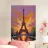 An artistic interpretation of the Eiffel Tower bathed in radiant orange and purple tones, this oil painting brings to life the grandeur of Parisian evenings. The tower stands majestic against a richly textured sky, while the glowing canal below mirrors its beauty. The trees and pathways frame the composition, guiding the viewer's eye toward the illuminated monument. Perfect for admirers of impressionism and lovers of Paris, this piece celebrates the fusion of nature, architecture, and art.