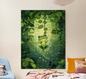 Frog in lush rainforest setting with light filtering through hahnemühle