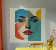 Geometric Abstract Portrait of Woman with Angular Shapes hahnemühle