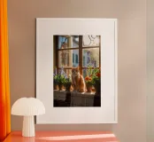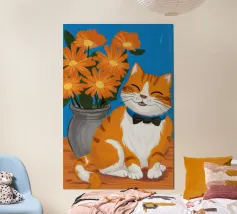Ginger cat resting windowsill surrounded by colorful flow hahnemühle