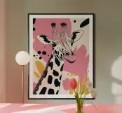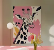Giraffe Portrait with Abstract Pink Background hahnemühle