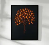 A stunning piece of digital art that reimagines the classic Tree of Life as a luminous, interconnected network of numbers. Each glowing branch and root is intricately detailed with binary digits, creating a captivating fusion of nature and technology. This unique artwork is perfect for anyone fascinated by coding, computer science, or the beautiful complexity of the digital world. The warm, fiery glow against a dark background makes this a mesmerizing statement piece for any modern home, office, or study.