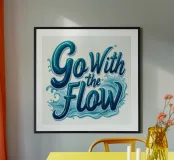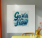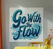 This vibrant and inspiring typography piece captures the essence of the phrase "Go With the Flow." The bold, flowing script is set against a backdrop of dynamic water waves, symbolizing the ebb and flow of life. The bright blue color palette evokes a sense of calm and serenity, inviting you to embrace the natural rhythms of existence. This artwork is a perfect reminder to let go of control and trust in the journey.