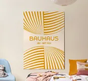 A sun-drenched and mesmerizing piece! This abstract poster, inspired by the dynamism of the Bauhaus movement, uses sweeping curved lines and striped patterns to create a striking optical illusion and a sense of vibrant motion. The design is rendered in a warm, cheerful palette of Golden Yellow (Mustard/Ochre) against an off-white background. This hue beautifully embodies the Mid-Century Modern aesthetic and makes the geometric flow a stunning, mood-boosting centerpiece for your contemporary or retro home. This is a premium digital download of superior quality, delivered at an ultra-high 7000x5