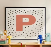 The playful design with the letter "P" in bright red on a black dot pattern is a stylish eye-catcher. Perfect for children's rooms, modern living spaces or as a gift idea with a personal touch. The clear typography combined with a Scandinavian-inspired pattern adds a charming accent to any room. Ideal for combining with other letters from the series.