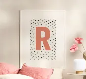 The playful design with the letter "R" in bright red on a black dot pattern is a stylish eye-catcher. Perfect for children's rooms, modern living spaces or as a gift idea with a personal touch. The clear typography combined with a Scandinavian-inspired pattern adds a charming accent to any room. Ideal for combining with other letters from the series.