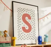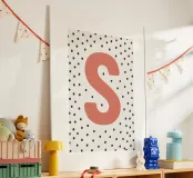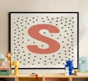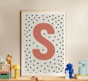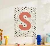 The playful design with the letter "S" in bright red on a black dot pattern is a stylish eye-catcher. Perfect for children's rooms, modern living spaces or as a gift idea with a personal touch. The clear typography combined with a Scandinavian-inspired pattern adds a charming accent to any room. Ideal for combining with other letters from the series.