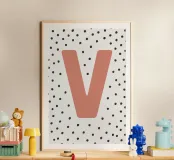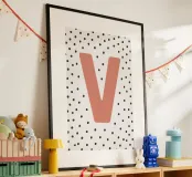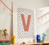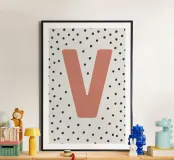 The playful design with the letter "V" in bright red on a black dot pattern is a stylish eye-catcher. Perfect for children's rooms, modern living spaces or as a gift idea with a personal touch. The clear typography combined with a Scandinavian-inspired pattern adds a charming accent to any room. Ideal for combining with other letters from the series.