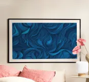 This design features dynamic, swirling patterns in various shades of blue, creating a stunning abstract display perfect for use as a desktop wallpaper.