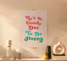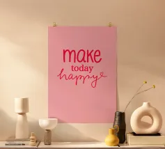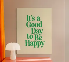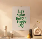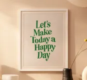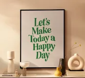 Infuse your space with positivity and vintage charm with this elegant typography art print. Featuring the uplifting phrase "Let's Make Today a Happy Day" in green vintage serif lettering on a soft grey background, this design exudes warmth and optimism. Perfect for modern interiors or as a thoughtful gift, it serves as a daily reminder to embrace joy and create happiness. The classic colour combination and timeless typography make it a versatile addition to any room, inspiring a positive outlook while adding a touch of retro sophistication to your décor.
