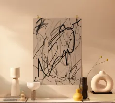 This extraordinary art print design combines fine, flowing lines with a dynamic composition. The monochrome colour scheme underlines the minimalist aesthetic and makes the artwork a timeless eye-catcher for modern living spaces. The elegant lines are reminiscent of an abstract depiction of figures and at the same time exude movement and harmony. Perfect for minimalist, Scandinavian or modern interiors - whether in the living room, bedroom, office or studio.