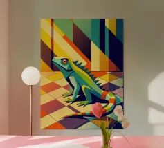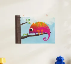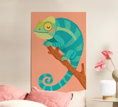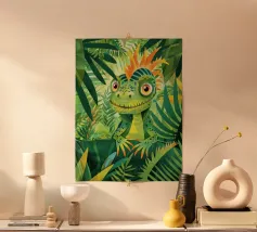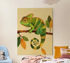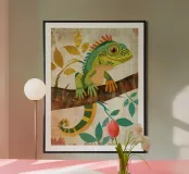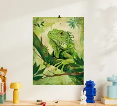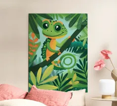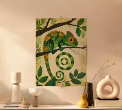 Lizard resting on a branch surrounded by leaves in a stylize hahnemühle