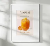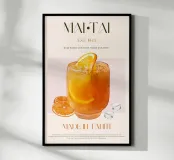 Set on a neutral, cream background, this elegant illustration of the famous cocktail drink mai tai adds sophistication to any kitchen, cafe or dining area. This minimalist yet informative design will spark conversation in any setting, adding a refined touch to your environment.