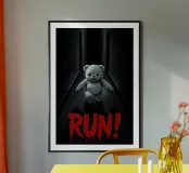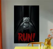 Menacing Teddy Bear in Dark Hallway with RUN Text hahnemühle