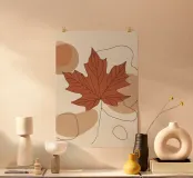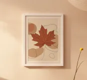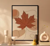Minimalist Maple Leaf Poster in Neutral Tones with Abstract hahnemühle