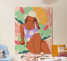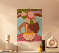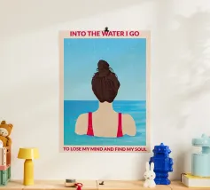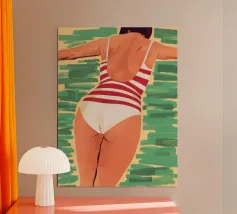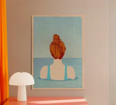 Sea Pattern - Modern retro poster with swimmer This colourful design shows a stylised woman in a patterned swimming costume with a retro flair. The abstract sea pattern of coral, seaweed and waves lends the motif a summery lightness and graphic depth. "Sea Pattern" celebrates the sea, summer and the strength of feminine serenity - modern, aesthetic and full of colour. Ideal for bathrooms, living rooms or creative spaces with a love of design, fashion and the Mediterranean spirit.
