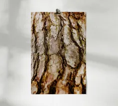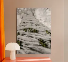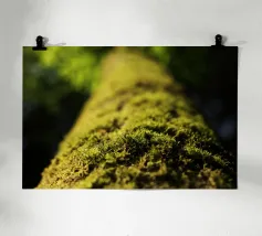 Moss-covered tree bark with twisting branches in a forest hahnemühle