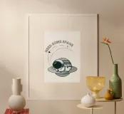 Find a moment of cosmic calm with this charming digital poster featuring a sleepy astronaut resting peacefully on a planet with rings, reminiscent of Saturn. The whimsical illustration, rendered in grayscale with a clean outline, captures a playful desire for solitude. Above, the phrase "NEED SOME SPACE" curves in a subtle, arc-shaped typography, enhanced by delicate star and orbit line details. Set against a clean white background, this piece is both humorous and serene. This high-quality digital poster, delivered at 7000x5000 pixels and 300 dpi, brings the excellence of contemporary graphic