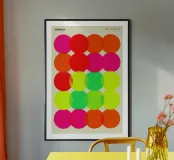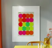 A visual laboratory of light and colour: this work explores the magic of superimposition - neon circles mix to create new tones, textures and optical rhythms. The composition is reminiscent of colour field painting, op art and contemporary digital design studies. Despite its geometric rigour, it has a playful and pulsating effect. A picture that electrifies rooms - modern, experimental, with a touch of retro-future techno-poetry.