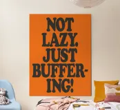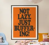 Not Lazy. Just Buffering! – This vibrant and witty design brings humour and honesty together in bold black lettering on a bright orange background. A must-have for anyone navigating burnout, neurodivergence or just modern life, it offers a punchy reminder that pausing doesn’t mean failing. Ideal for workspaces, bedrooms or student flats, and perfect as a quirky, understanding gift for friends or loved ones. Whether for birthdays or just because, this artwork delivers laughs with a side of compassion and truth.