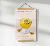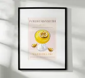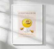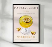 Set on a neutral, cream background, this elegant illustration of the famous pornstar martini cocktail adds sophistication to any kitchen, cafe or dining area. This minimalist yet informative design will spark conversation in any setting, adding a refined touch to your environment.