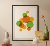 A playful burst of color inspired by mid-century modern aesthetics. Retro Candy Vibes brings together warm orange and lime tones in a minimalist composition that feels both nostalgic and fresh — perfect for those who love a pop of joy in their space.