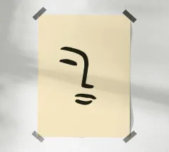 Simple line drawing shows a smiling face with blushed cheek hahnemühle