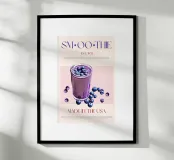 Set on a neutral, cream background, this elegant illustration of the classic breakfast smoothie adds sophistication to any kitchen, cafe or dining area. This minimalist yet informative design will spark conversation in any setting, adding a refined touch to your environment.