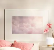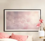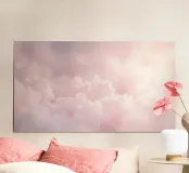 A dreamy landscape of fluffy pastel clouds fills the canvas, illuminated by soft light. This abstract design evokes a sense of calm and tranquility, perfect for various applications.