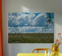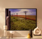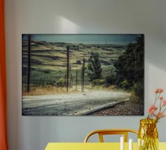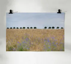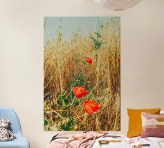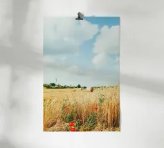 A candid springtime capture taken from a moving train, revealing a Romanian countryside bursting into bloom. Poppies, yellow wildflowers, and a sunlit sky meet power lines and motion blur, blending nature’s renewal with the pulse of modern life. This fine art print speaks of travel, freedom, and fleeting beauty—ideal for eclectic interiors or as a bedroom wall accent with a sense of story.
