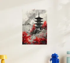 structure with ornate architecture surrounded by pink trees hahnemühle