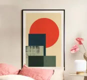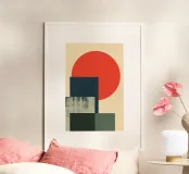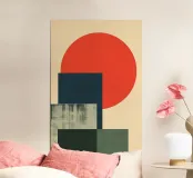 A radiant red sun rises over layered geometric blocks, evoking the harmony of form and function. “Sun Over Blocks” is a Bauhaus-inspired meditation on contrast, simplicity, and balance.