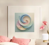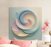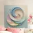 Intricate spiral shapes in soft pastels blend harmoniously, giving the illusion of flowing motion against a pale backdrop. The design captivates with its gentle curves.