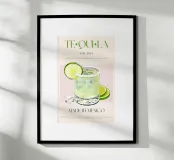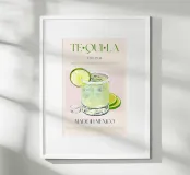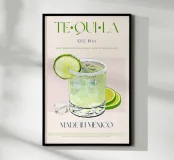 Set on a neutral, cream background, this elegant illustration of the famous Mexican drink tequila adds sophistication to any kitchen, cafe or dining area. This minimalist yet informative design will spark conversation in any setting, adding a refined touch to your environment.