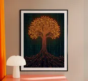 The Digital Roots of Life: A Luminous Circuit Board Tree hahnemühle